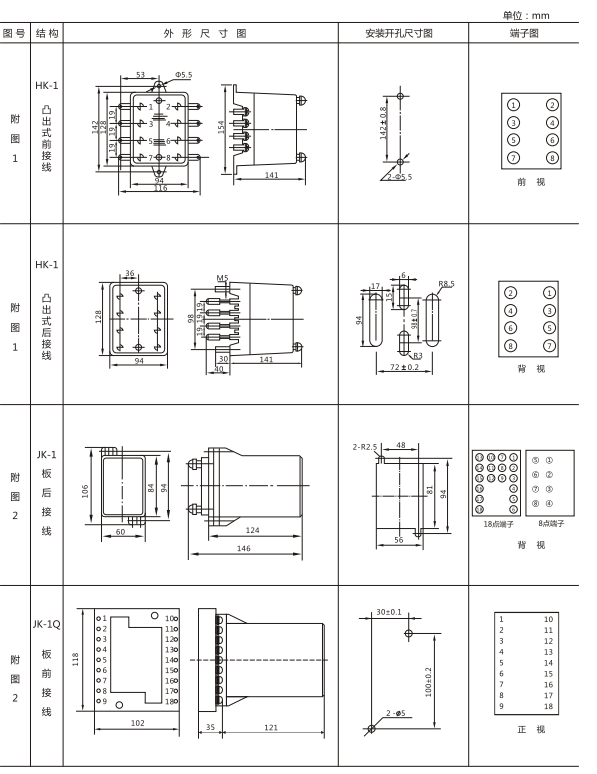 JY-ZB直流高低值電壓繼電器外形及開(kāi)孔尺寸