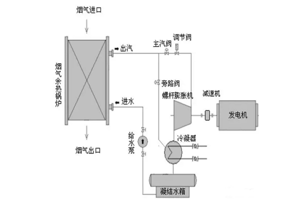 垃圾焚燒發(fā)電的汽水系統(tǒng)是指垃圾焚燒發(fā)電的余熱鍋爐吸收煙氣熱量產(chǎn)生蒸汽,一部分用于吹灰器吹灰、蒸汽預(yù)熱器加熱一次風(fēng)、除氧器加熱給水除氧、除塵器集灰伴熱等垃圾焚燒工藝設(shè)備自用,一部分對外供熱(輸送距離長、運行時間短,基本不可行),現(xiàn)大多數(shù)是進入汽輪機進行發(fā)電或者直接排放;同時,垃圾焚燒發(fā)電汽輪機系統(tǒng)——從垃圾焚燒鍋爐來的飽和蒸汽進入汽輪機做功(1.6Mpa 飽和蒸汽溫度203℃),轉(zhuǎn)變?yōu)?.3 Mpa 的乏汽,進入低壓冷凝器冷卻成冷卻水,這部分能量就白白浪費;經(jīng)由余熱鍋爐產(chǎn)生的蒸汽或者汽輪機乏汽可以進入ORC余熱發(fā)電系統(tǒng),產(chǎn)生電能,進一步充分利用熱量,實現(xiàn)能量的梯級利用,提供利用效率。
