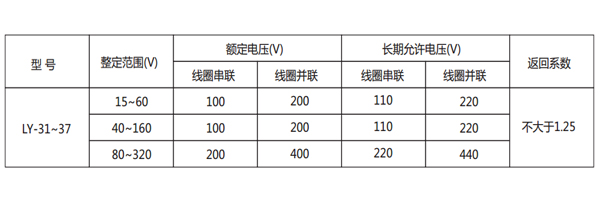 三、LY-33電壓繼電器的參數(shù)